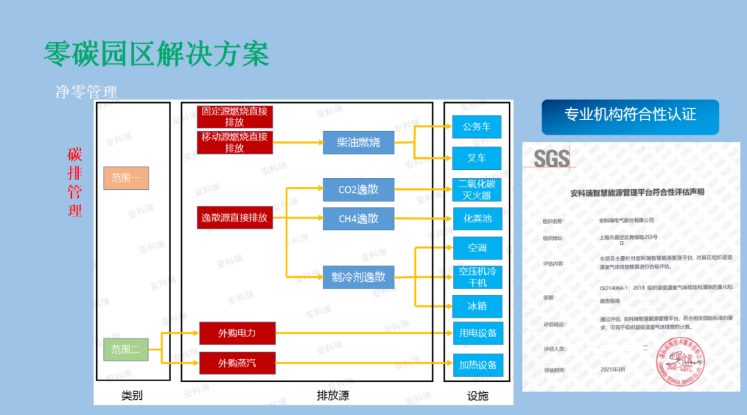 安科瑞能碳管理平臺(tái)作為園區(qū) “智慧大腦",深度對(duì)標(biāo) ISO14064 國(guó)際標(biāo)準(zhǔn)及山東省監(jiān)測(cè)要求,實(shí)現(xiàn)能源與碳排放一體化管控。